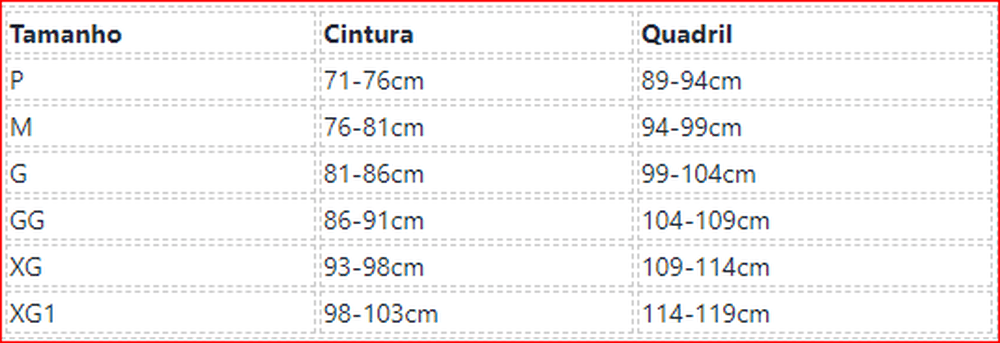 Por favor, escolha o seu tamanho de acordo com nossas medidas para o tamanho do quadril e cintura. Cada tamanho (em cm) é estimado quando a roupa está totalmente esticada.